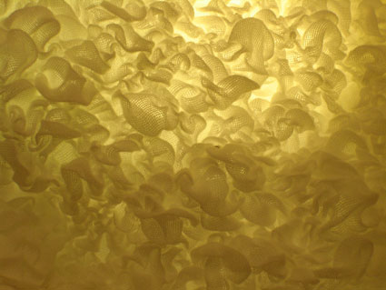 | diese fotos habe ich innen im schaufenster mit den dingen die ich täglich benütze gemacht. das rechte bild zeigt die struktur des tuches, die immer dort liegt. auch sie ist faszinierend unregelmäßig. |