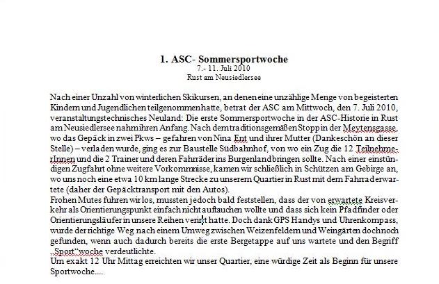 RUBRIK HISTORISCHES: 1. Sommersportwoche