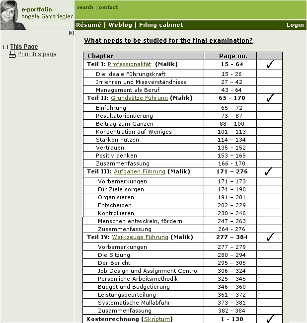 . By ticking off chapters I had successfully studied, I kept a good overview of my learning progress.